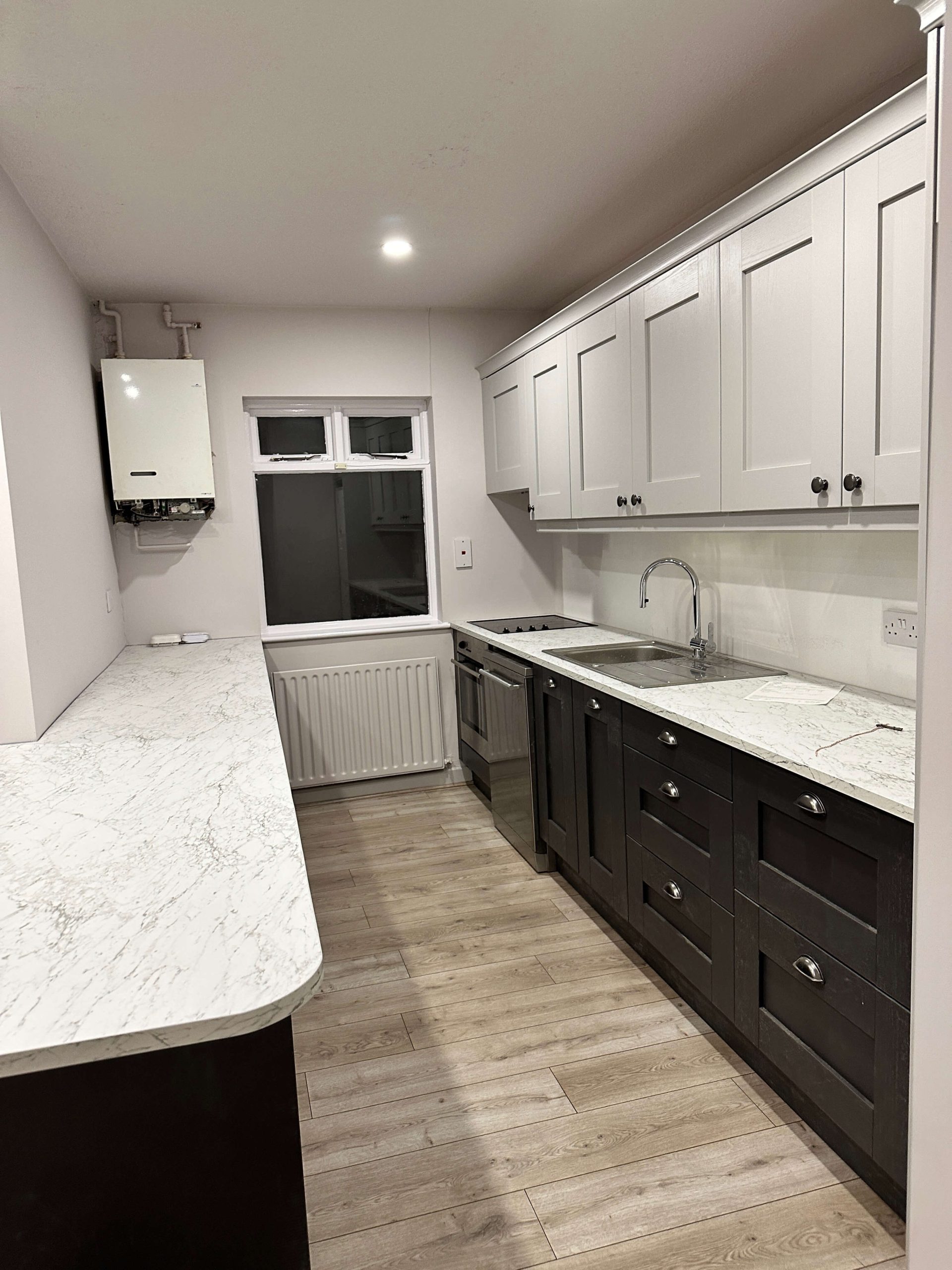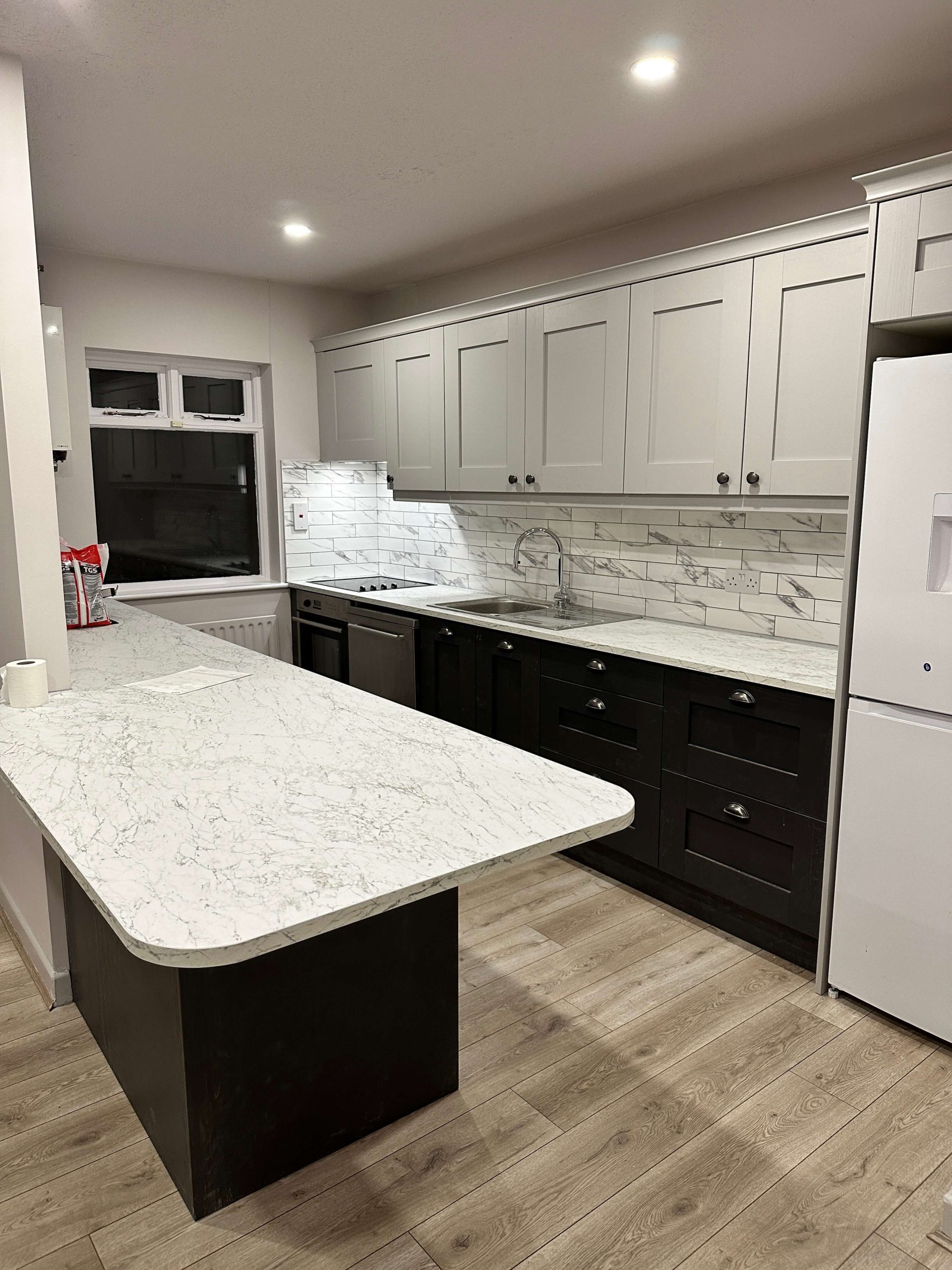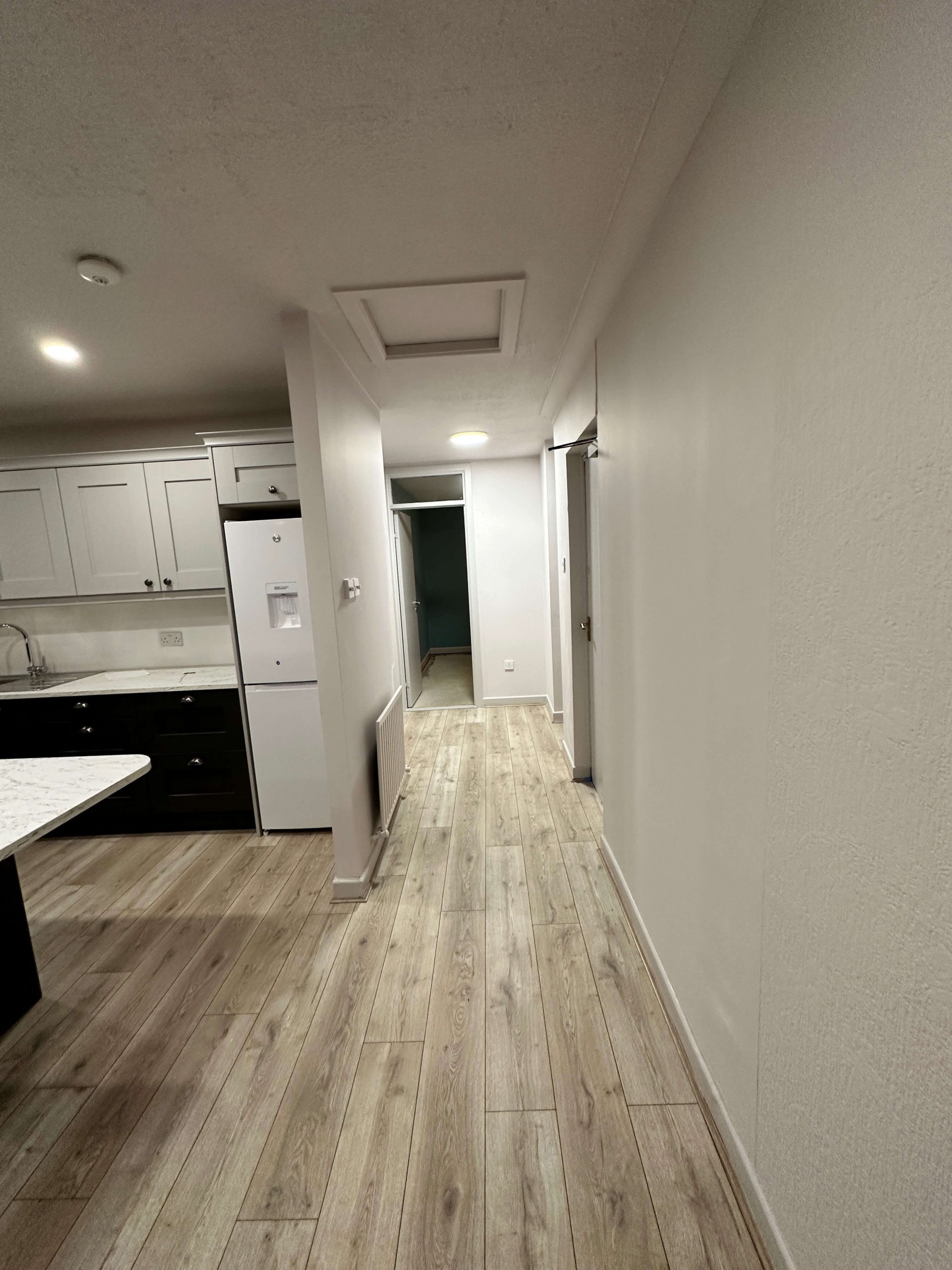 This project involved a comprehensive renovation of a residential apartment in Blackrock, including a full bathroom refurbishment, kitchen reconfiguration to create an open-plan layout, new flooring throughout, and complete internal painting. The works focused on modernising the apartment, improving functionality, and delivering a clean, contemporary finish across all living spaces.