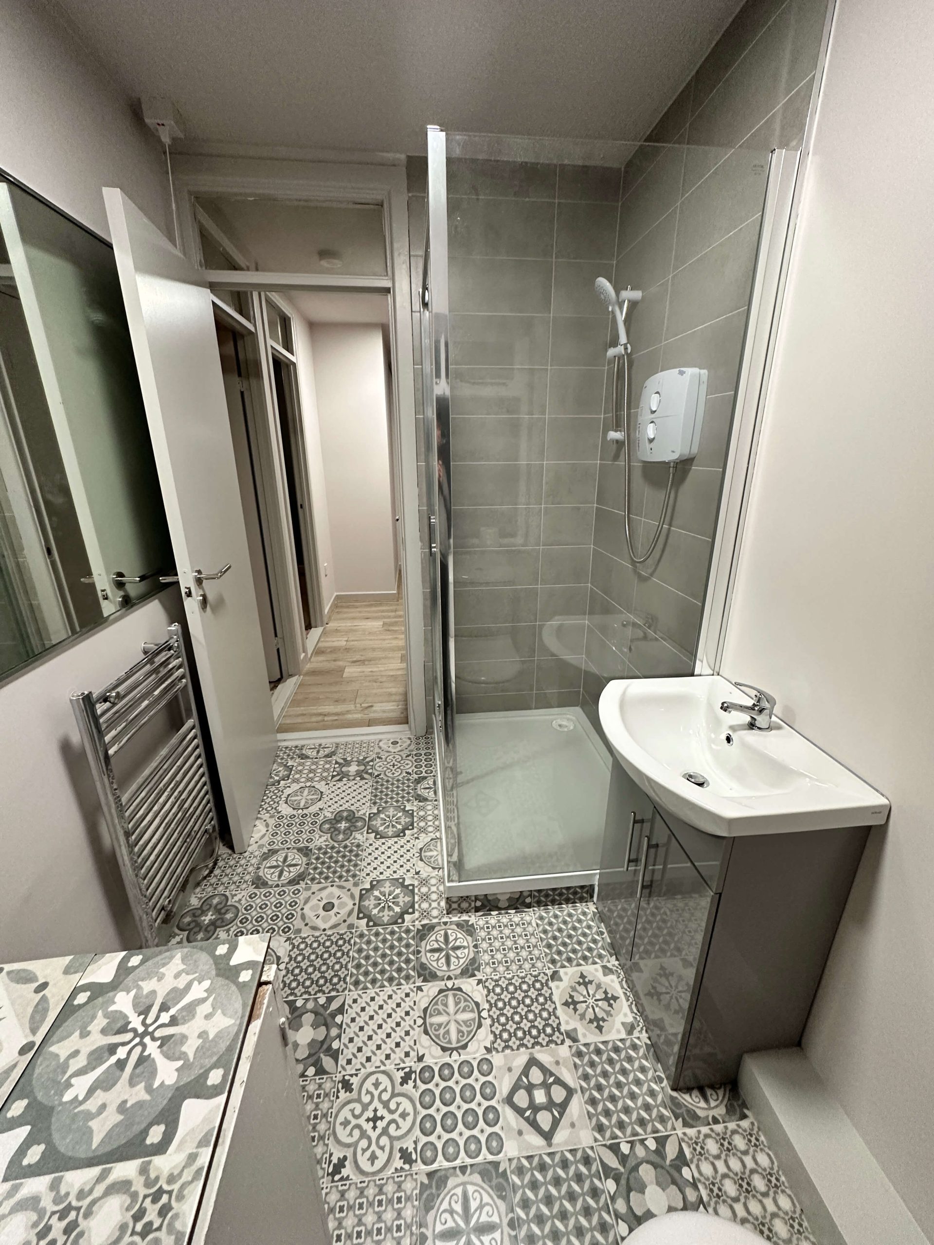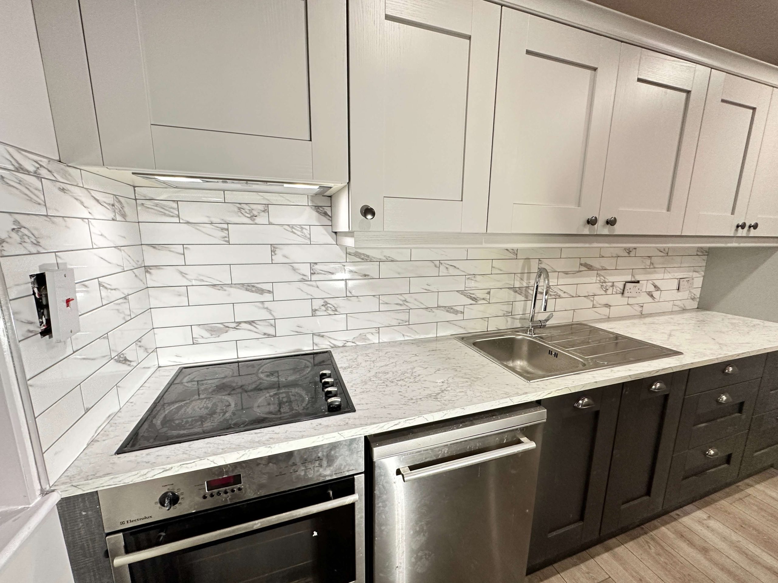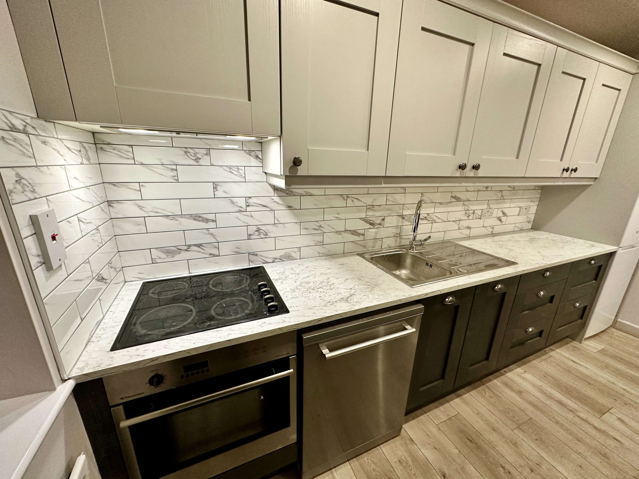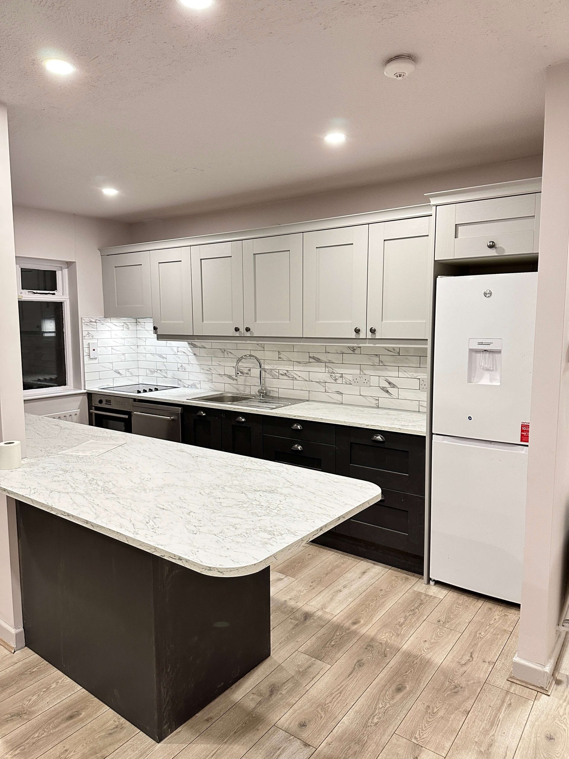 This project involved a comprehensive renovation of a residential apartment in Blackrock, including a full bathroom refurbishment, kitchen reconfiguration to create an open-plan layout, new flooring throughout, and complete internal painting. The works focused on modernising the apartment, improving functionality, and delivering a clean, contemporary finish across all living spaces.